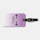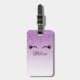 Personalised luggage tag with a trendy stylish design. The background is a purple gradient colour with an image of fake sparkling glitter dripping down from the top. A pair of girly cute eyelashes underneath the glitter image.