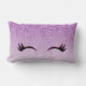 A lumbar pillow with a trendy stylish design. The background is a purple gradient colour with an image of faux sparkling glitter dripping down from the top. A pair of girly cute eyelashes underneath the glitter image.