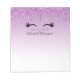 A notepad with a trendy stylish design. The background is a purple gradient colour with an image of fake sparkling glitter dripping down from the top. A pair of girly cute eyelashes underneath the glitter image.