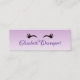 Mini business cards with a trendy stylish design. The background is a purple gradient colour with a pair of pink and black girly cute eyelashes.