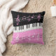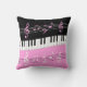 Stylish Pink Black White Piano Keys and Notes Cushion