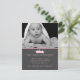 Stylish custom photo baby birth announcement done in charcoal grey, with a pink edge, at the top, and a cute pink cartoon crown. Add your baby's photo to the top of the announcement and personalise the pink text, with your baby's birth information. Sweet and stylish way to announce the arrival of your baby girl, to friends and family.