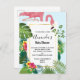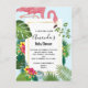 Stylish Pink Flamingo and Tropical Leaves Invitation Postcard