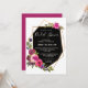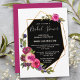 This unique bridal shower invitation pops with style and sophistication. It has a geometric double frame with a black background in the centre section. Bright pink, magenta, and violet purple watercolor roses wrap around the upper and lower corners go add a feminine pop of colour. The back of this invitation is a matching feminine magenta colour. Personalise the text template with your event details.