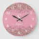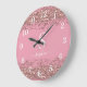 Stylish Pink Glitter Monogram Script Name Large Clock