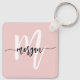 Stylish Pink Modern Script Girly Monogram Name Key Ring