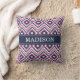 Stylish Pink Navy Ikat Diamond Pattern with Name Cushion