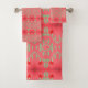 Stylish Pink Red And Mint Green Floral Bath Towel Set