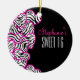 Stylish Pink Sweet 16 Zebra Heart Design Name Ceramic Ornament