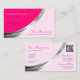 Stylish Pink with Silver Decor and QR-Code Modern Business Card
