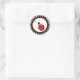 Stylish round envelope seal / sticker done in with, with a black outer edge, with white and red polka dots. Cute graphics of a red and black ladybug, in the centre. Perfect finishing touch to our girl's Polka Dot and Flower birthday invitations.
