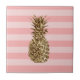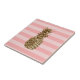 Stylish pretty girly gold pineapple & pink stripe ceramic tile