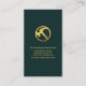 A faux gold roof top demarcates an upper green layer against its dark grey counterpart below. Over at the top is a gold hammer logo you can use followed by your prestigious name, the job title and contact details near the base.