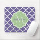 Stylish Purple Quatrefoil and Name Green Monogram Mouse Pad