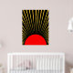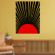 A stylish design with a vivid red sun with rays of yellow sunshine on a black background. Whether you're looking for a gift for a friend or just want something new for yourself, this is the perfect choice.
