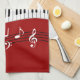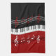 Stylish Red Black White Piano Keys and Notes Tea Towel