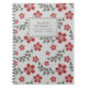 Stylish Red Grey Flowers and Leaves Personalised Notebook