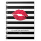 Stylish Red Lips with Classic Black White Stripes Notebook