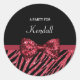 Stylish Red Zebra Print FAUX Glitz Bow With Name Classic Round Sticker