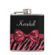 Stylish Red Zebra Print FAUX Glitz Bow With Name Hip Flask