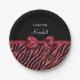 Stylish Red Zebra Print FAUX Glitz Bow With Name Paper Plate