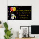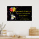 Stylish Retirement congratulation party sign poster featuring a sparkling wine bucket glasses and balloons on a black background with spiral colourful confetti.