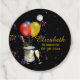 Stylish Retirement favour tag with sparkling wine, ice bucket, flute glasses , balloons and confetti all on a black background. The perfect tag to add to retirement party gifts and favours. All text can be customised then personalise with a name and date. Would also be great for birthdays, wedding anniversaries and many other celebrations .