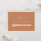 A simple and elegant text card keepsake to thank your bridesmaid. A retro chic theme: adopt this vintage and stylish typographic design for your wedding stationery, with a brown sugar colour theme. Easy to mix and match with our similar stationery available in burnt orange, terracotta & peach pink. Fully customisable text colours and backgrounds.
