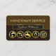 A stylish faux gold rectangular frame sit at the center of the card demarcating the upper brown layer from the darker piece below. The gold box has your prestigious name with the business name "HANDYMAN SERVICE" directly above. You can change this to suit your own service needs. Near the base is a gold handyman tools design which can represent some of the services that you offer. e.g. the hand drill-measuring tape can represent carpentry, the brushes for painting-remodeling etc. Their usage is left to your own interpretation.
