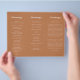 Trifold wedding program: all in one, just fold the flyer in 3 to get your trifold program. A retro chic theme: adopt this vintage and stylish typographic design for your wedding stationery, with a brown sugar colour theme. Easy to mix and match with our similar stationery available in burnt orange, terracotta & peach pink. Fully customisable text colours and backgrounds.