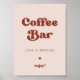 Love is brewing: Coffee Bar wedding sign. A retro chic theme: adopt this vintage and stylish typographic design for your wedding stationery, with a peach pink colour theme. Easy to mix and match with our similar stationery available in burnt orange, terracotta & brown sugar. Fully customisable text colours and backgrounds.