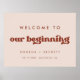 Welcome to our Beginning Wedding Sign. A retro chic theme: adopt this slightly vintage and stylish typographic design for your wedding stationery, with a burnt orange, terracotta, brown sugar & peach pink colour theme. Fully customisable text, colours and backgrounds.