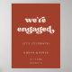 We are engaged: engagement party welcome sign. A retro chic theme: adopt this vintage and stylish typographic design for your Wedding stationery, with a terracotta colour theme. Easy to mix and match with our similar stationery available in peach pink, rust orange & brown sugar. Fully customisable text colours and backgrounds.