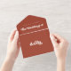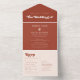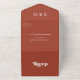 A retro chic theme: adopt this slightly vintage and stylish typographic design for your wedding stationery, with a burnt orange, terracotta, brown sugar & peach pink colour theme. Fully customisable text, colours and backgrounds. All in one: economical and eco-friendly, this seal and send invitation includes a RSVP postcard.