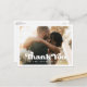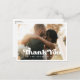 Express your gratitude and thank your guests for their presence and beautiful gifts with this customizable photo card with a modern style. Just add your favorite wedding picture, change the colors and write your own thank you message.