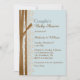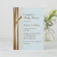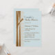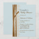 Stylish couple's baby shower invitation done in a light robin's egg blue. Graphics of ivory crocheted looking lace and brown ribbons, decorate the left side of the invitation. Personalise all the text to suit your event needs.