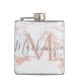 Stylish Rose Gold Foil Marble Monogram Hip Flask
