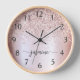 Girly Glam Blush Rose Gold Glitter Metallic Monogram Name Script Custom Personalised Round Clock. These design featuring your first name in a pretty hand lettered style swash tail font signature typography on blush pink rose gold faux metallic foil with glam sparkle glitter border. These are easy to customise it. Great stylish feminine housewarming gift, also for birthday, mother’s day, wedding, bridal shower, sweet 16 birthday party and baby shower, graduation and It’s for the girl who loves unique sparkle stylish things.