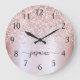 Stylish Rose Gold Glitter Monogram Name Signature Large Clock