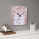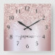 Girly Glam Blush Rose Gold Glitter Metallic Monogram Name Script Custom Personalised Square Wall Clock. These design featuring your first name in a pretty hand lettered style swash tail font signature typography on blush pink rose gold faux metallic foil with glam sparkle glitter border. These are easy to customise it. Great stylish feminine housewarming gift, also for birthday, mother’s day, wedding, bridal shower, sweet 16 birthday party and baby shower, graduation and It’s for the girl who loves unique sparkle stylish things.
