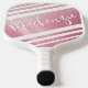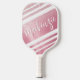 Sporty but girly personalised rose gold glitter pickleball paddle featuring a name or monogram shown in an editable hand-lettered script typography and changeable white sporty stripes for the pickler or pickleball enthusiast. PADDLE OPTIONS: Choose from Black, Tan or White edging and grip colours on the ordering page. ASSISTANCE: For help with design modification or personalisation, colour change, transferring the design to another product or if you would like coordinating items, contact the designer BEFORE ORDERING via the Zazzle Chat MESSAGE tab below or email makeitaboutyoustore@gmail.com.
