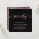 Elegant Chic Trendy Black and Rose Gold Seventy Script 70th Birthday Invitation. This modern birthday party invitation template for woman features stylish „seventy” text in huge faux rose gold foil swirly handwritten calligraphy (or typography) script with swash tail font, party details in blush rose gold colour on black background. At the reverse side faux rose gold foil abstract swirly wave circle pattern on black colour background. Perfect for celebrating, girly seventieth milestone birthdays in style, this invitation adds a touch of glamour to any feminine party.