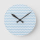Stylish Round Wall Clock, Blue and White Chevrons Clock