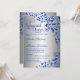 © Socialite Designs. An elegant royal blue and silver invitation with gorgeous corner decorative swirls ready to be personalised for your special event. Font style, text and paper type can be changed. Need HELP with customising or additional products with this design? Please do not hesitate to contact Socialite Designs.