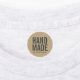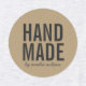 Stylish rustic label with the word "Handmade" in bold font and a stylish script for your name or store name in dark grey against a faux kraft background. It is an ideal product label for crafters and makers of handmade goods.
