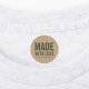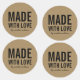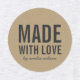 Stylish rustic label with the words "Made with Love" in bold font and a stylish script for your name or store name in dark grey against a faux kraft background. It is an ideal product label for crafters and makers of handmade goods.