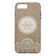 Stylish Rustic Burlap Ivory Lace Pattern Monogram Case-Mate iPhone Case