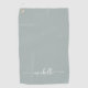 Elegant Modern Sage Green Monogram Name Script Signature Custom Personalised Golf Towel. This delicate minimalist plain colour design featuring first name in a pretty hand lettered style swash tail font calligraphy (or typography) on sage green or dusty green colour background. These are easy to customise it. Great stylish feminine birthday gift, also for mother’s day, anniversary, bachelorette party, wedding, bridal shower and It’s for the girl who loves unique clean minimalist things.