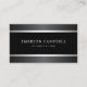 Elegant, black and grey, professional business cards or personal profile cards with your name and title/company name printed on the front. At the top and bottom are printed satin grey and silver gradient borders. White and grey text. On the back are customisable template fields for name, title/company name/speciality and contact information. A minimal, classy and modern design. Great for an attorney, lawyer, accountant etc