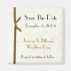 Decorative save the date magnet done, in cream and gold mottled background with a goldish brown satin like ribbon and bow on the left side. Customise the text to anything you want to make it personally yours.